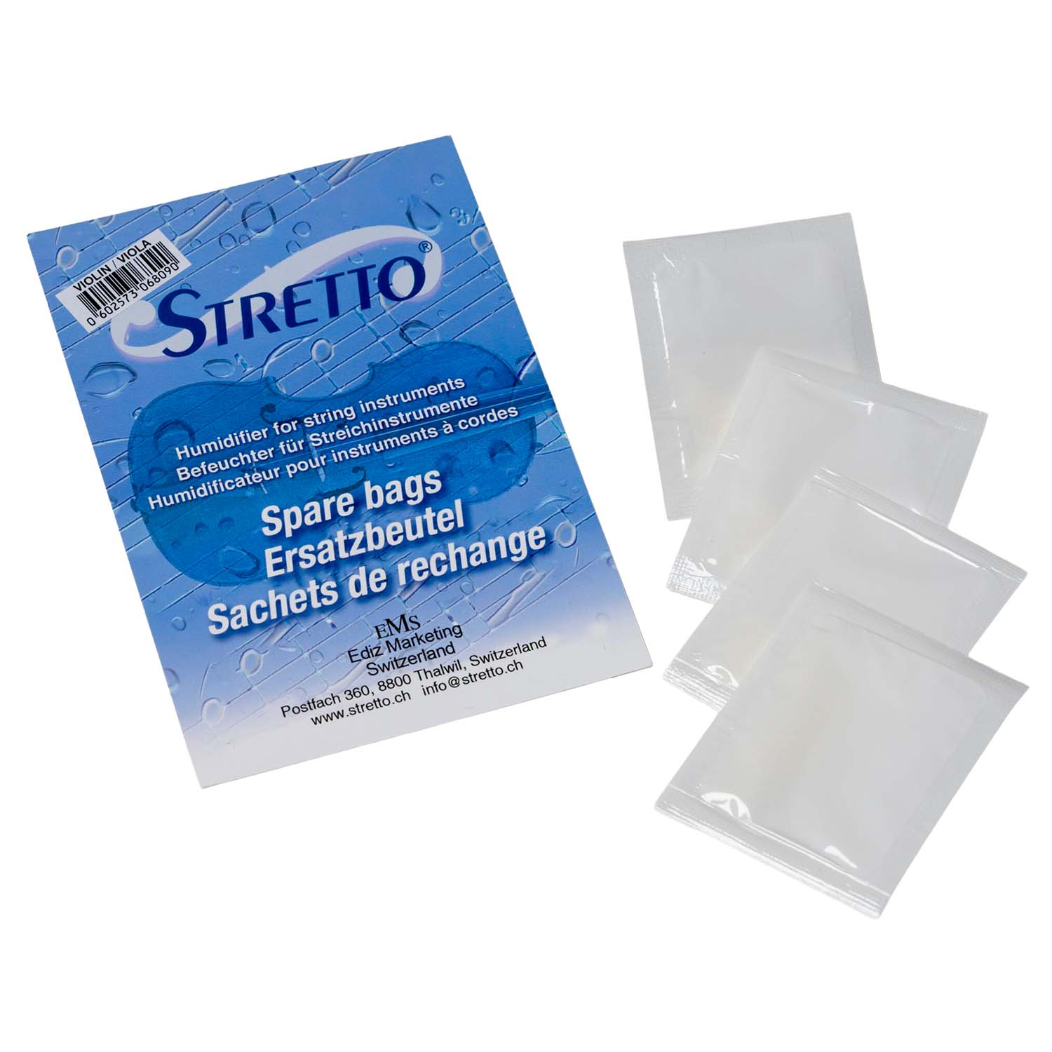 The Stretto replacement humidification pouch for Violin/Viola contains to four replacement pouches. The Stretto pouch effectively humidifies for up to two weeks. For use with the Stretto Humidifier for Violin/Viola.