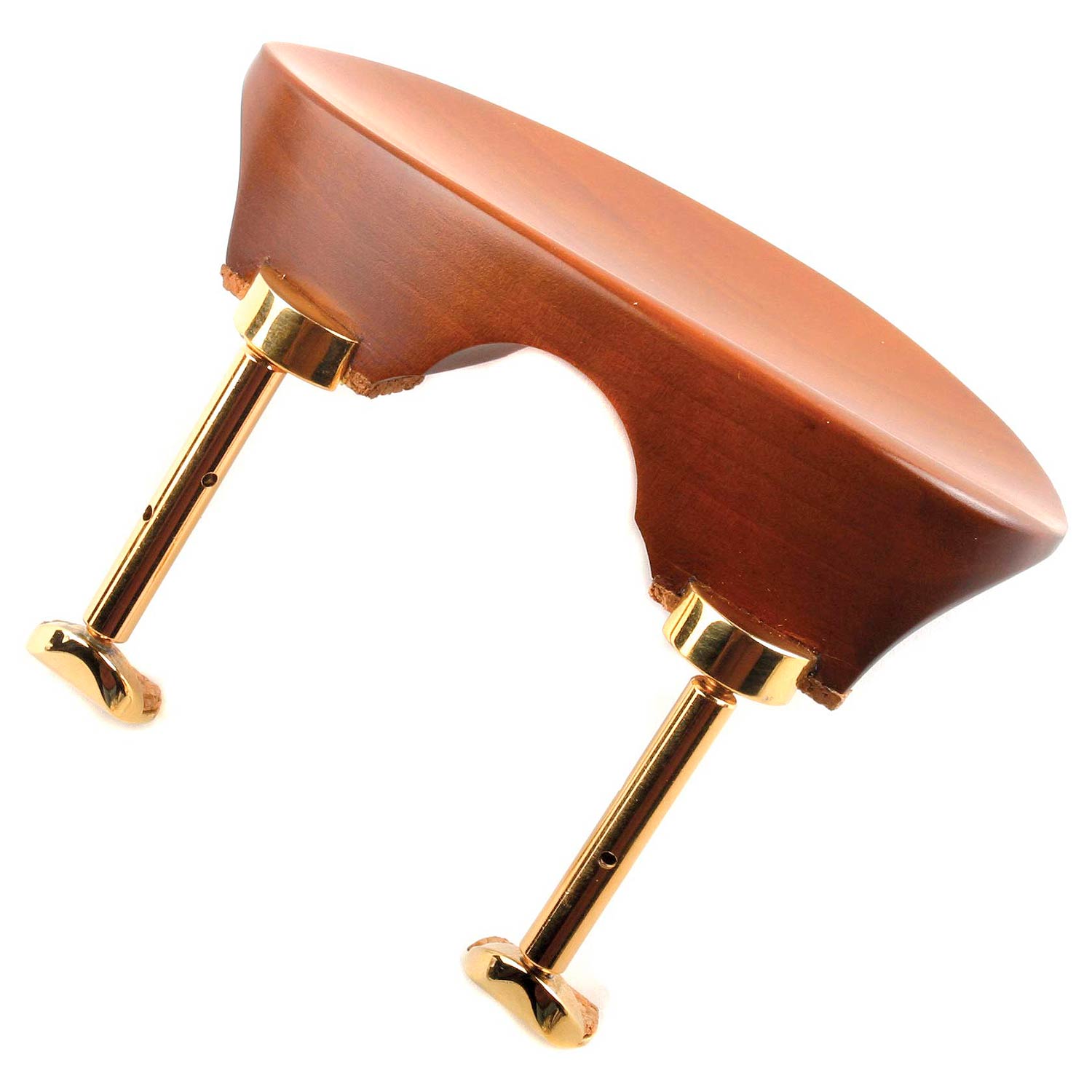 The Flat Flesch boxwood viola chinrest is a center mounted chinrest with a high plate height and a large, flat cup. Gold plated Hill style bracket.