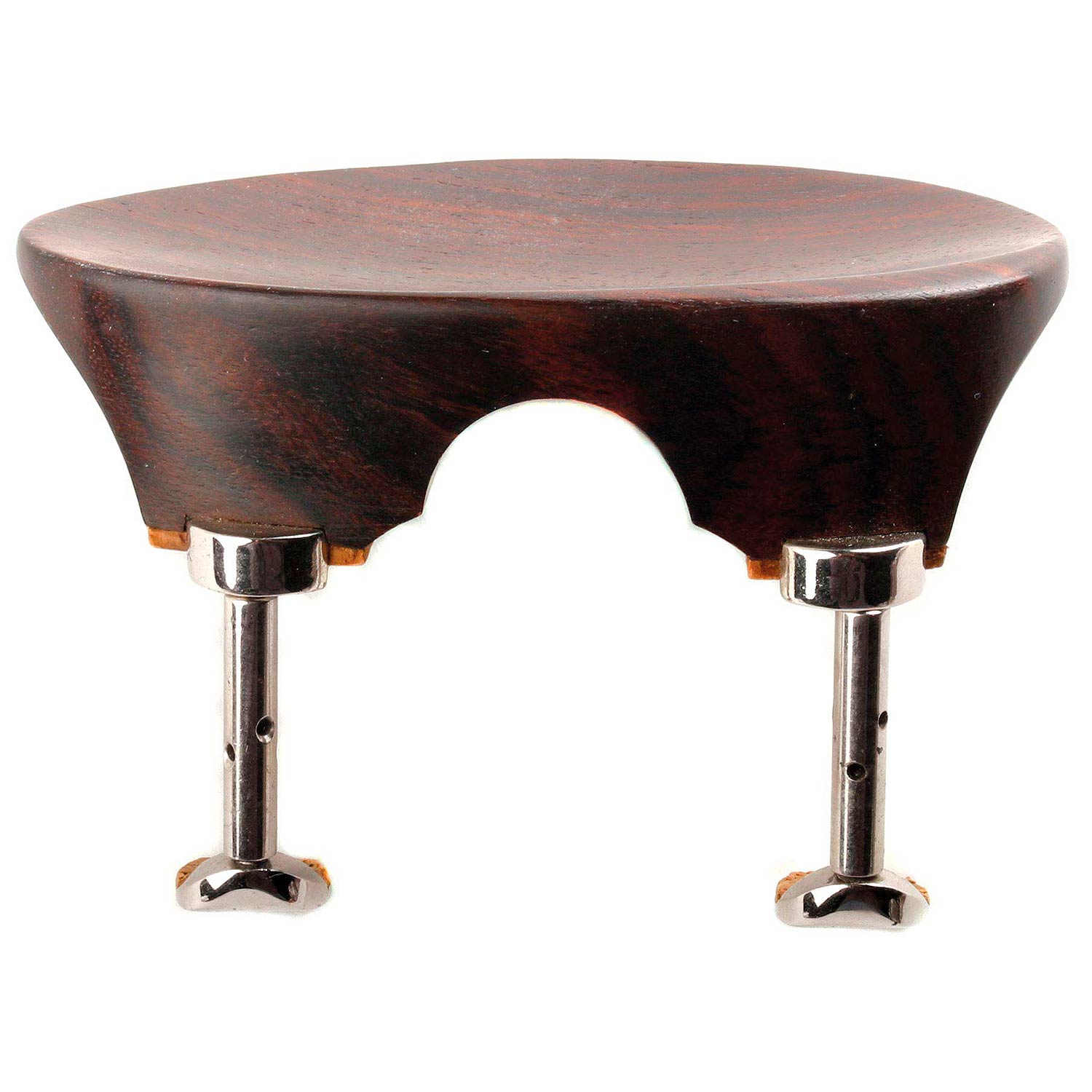 The Flat Flesch rosewood viola chinrest is a center mounted chinrest with a high plate height and a large, flat cup. Hill style bracket.