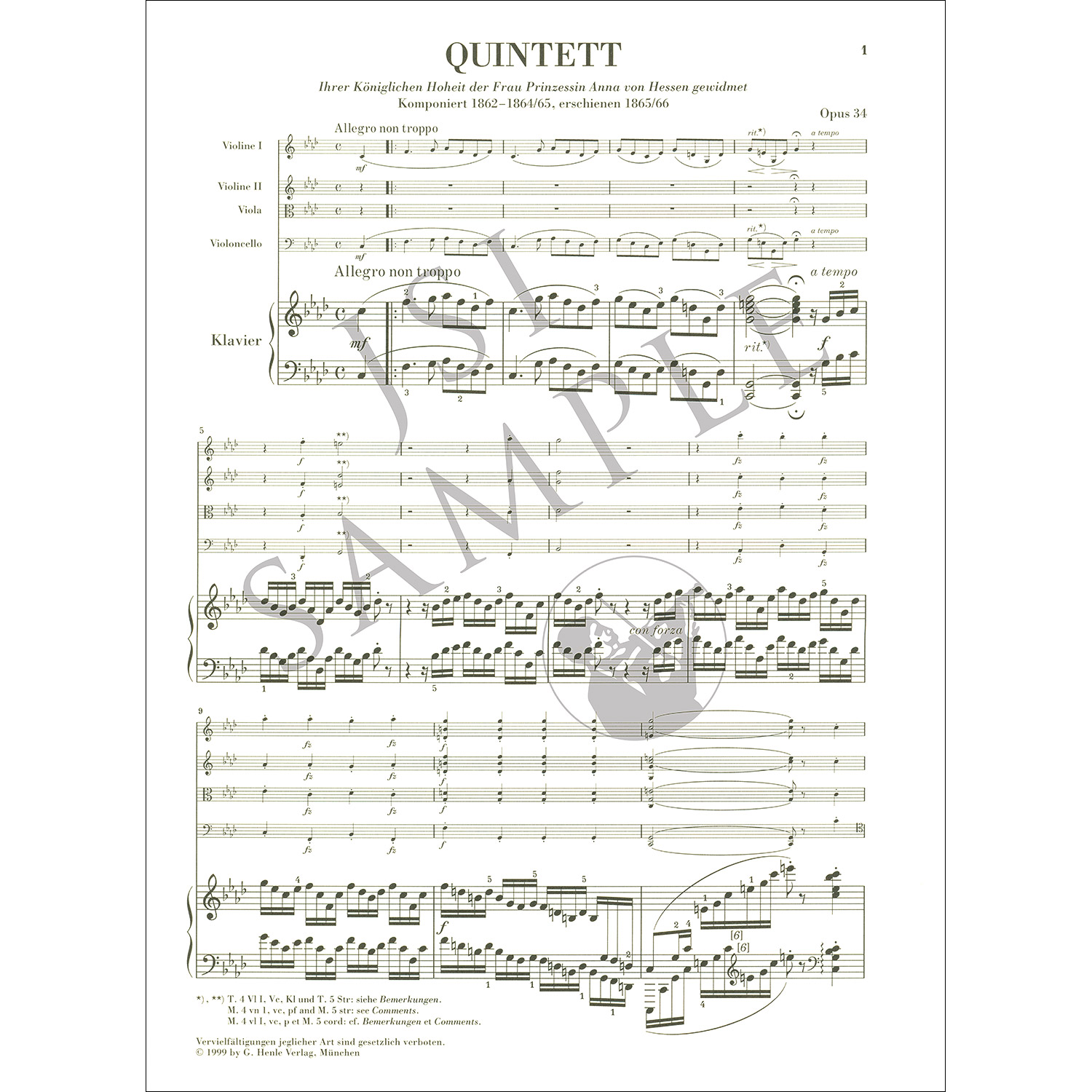 Piano Quintet in F Minor, op. 34; Johannes Brahms (G. Henle Verlag)Piano Quintet in F Minor, op. 34; Johannes Brahms (G. Henle Verlag)Piano Quintet in F Minor, op. 34; Johannes Brahms (G. Henle Verlag)Piano Quintet in F Minor, op. 34; Johannes Brahms (G. Henle Verlag)