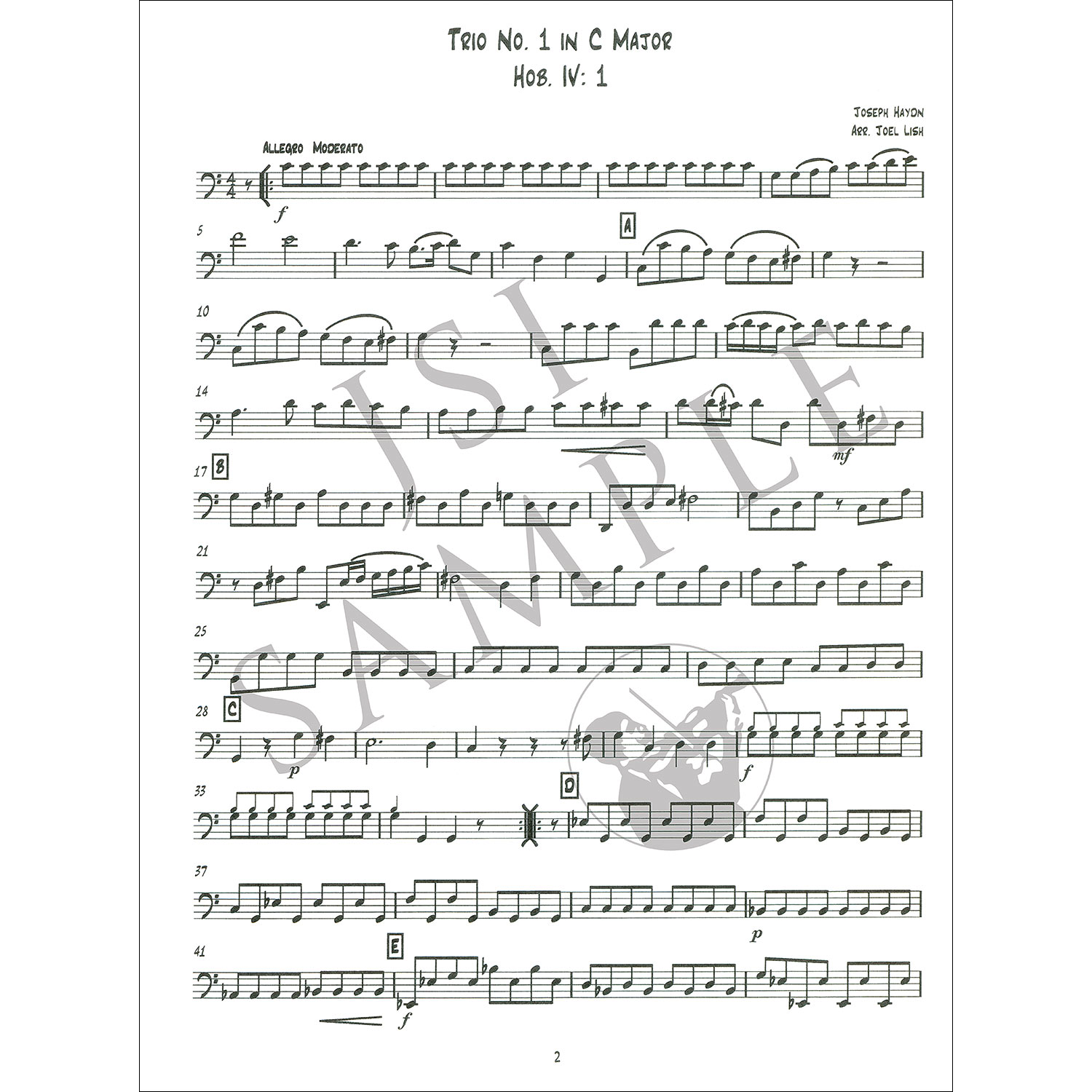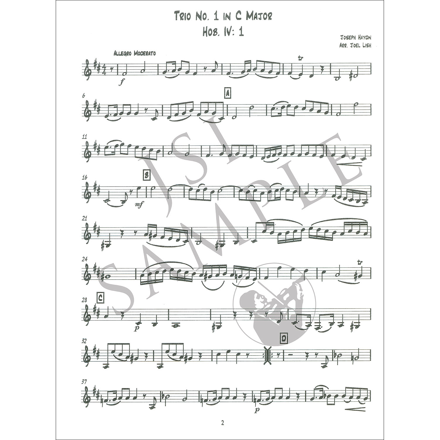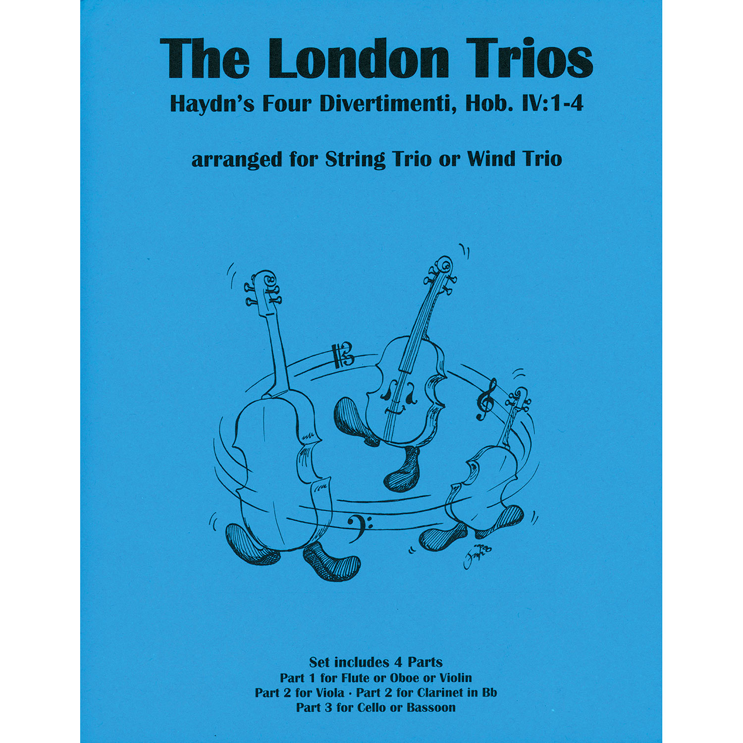 Haydn enjoyed a career renaissance during his celebrated travels to London. One of his wealthy patrons was Lord Abington, an amateur flute player. In a gesture of thanks and appreciation, Haydn wrote for him a set of divertimentiĀhis Four London Trios for two flutes and cello, Hob. IV: 1-4. These charming, genteel pieces have sophisticated counterpoint, though can be played easily by an amateur. This set of arrangements from Joel Lish and Last Resort Music contains versions of all four trios for string or wind trio. Parts only. Intermediate-advanced level, Grade 4.
