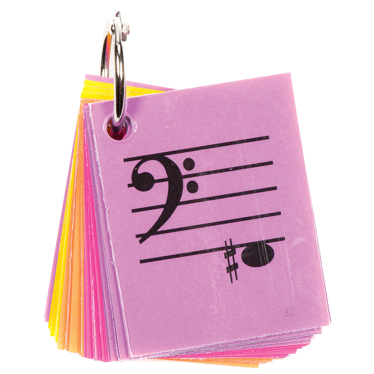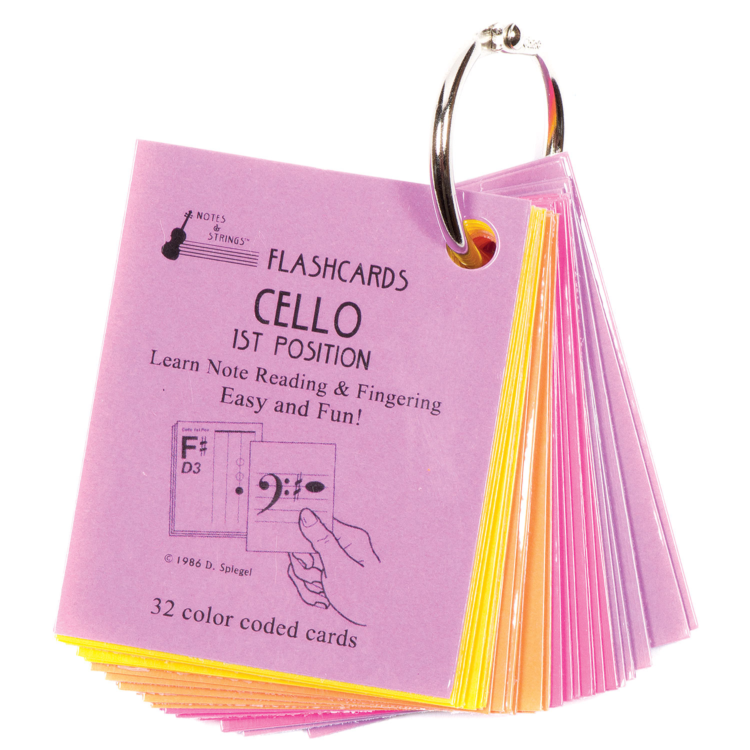 Notes & Strings string instrument music flashcards have the note on one side and the note name and fingering illustrated on reverse.