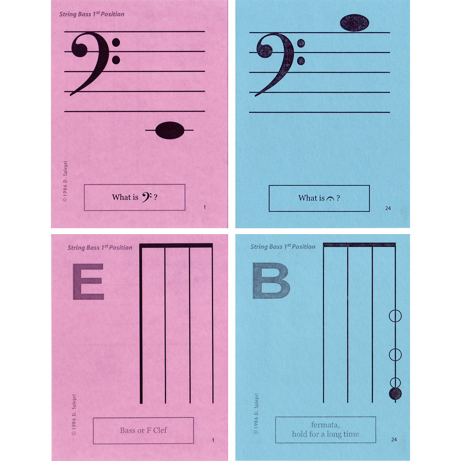 Notes & Strings string instrument music flashcards have the note on one side and the note name and fingering illustrated on reverse.
