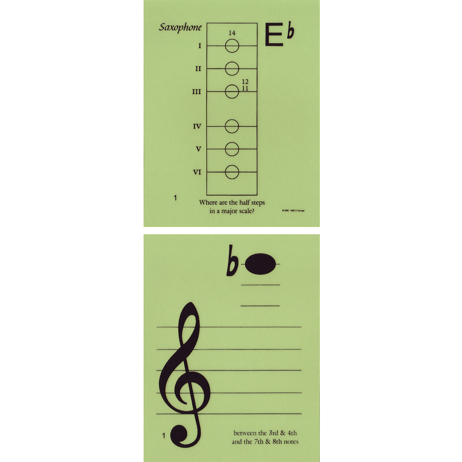 Notes & Strings string instrument music flashcards have the note on one side and the note name and fingering illustrated on reverse.