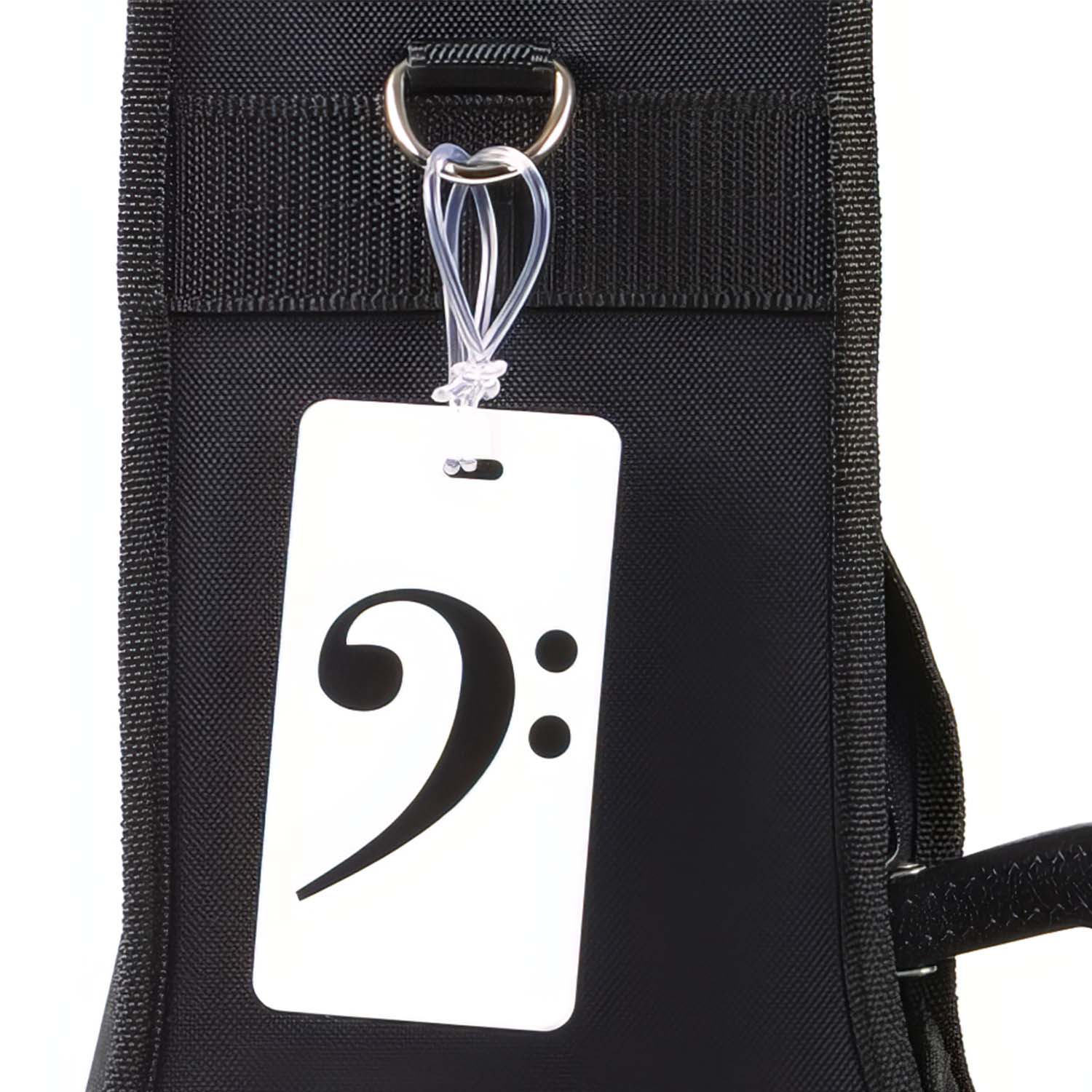 This large, well-made Bass Clef Case ID Tag is made from smooth, rigid plastic with a slide-in name card on the back. The unique design is great for identifying your child's case at school, but it's not just for instrument cases!