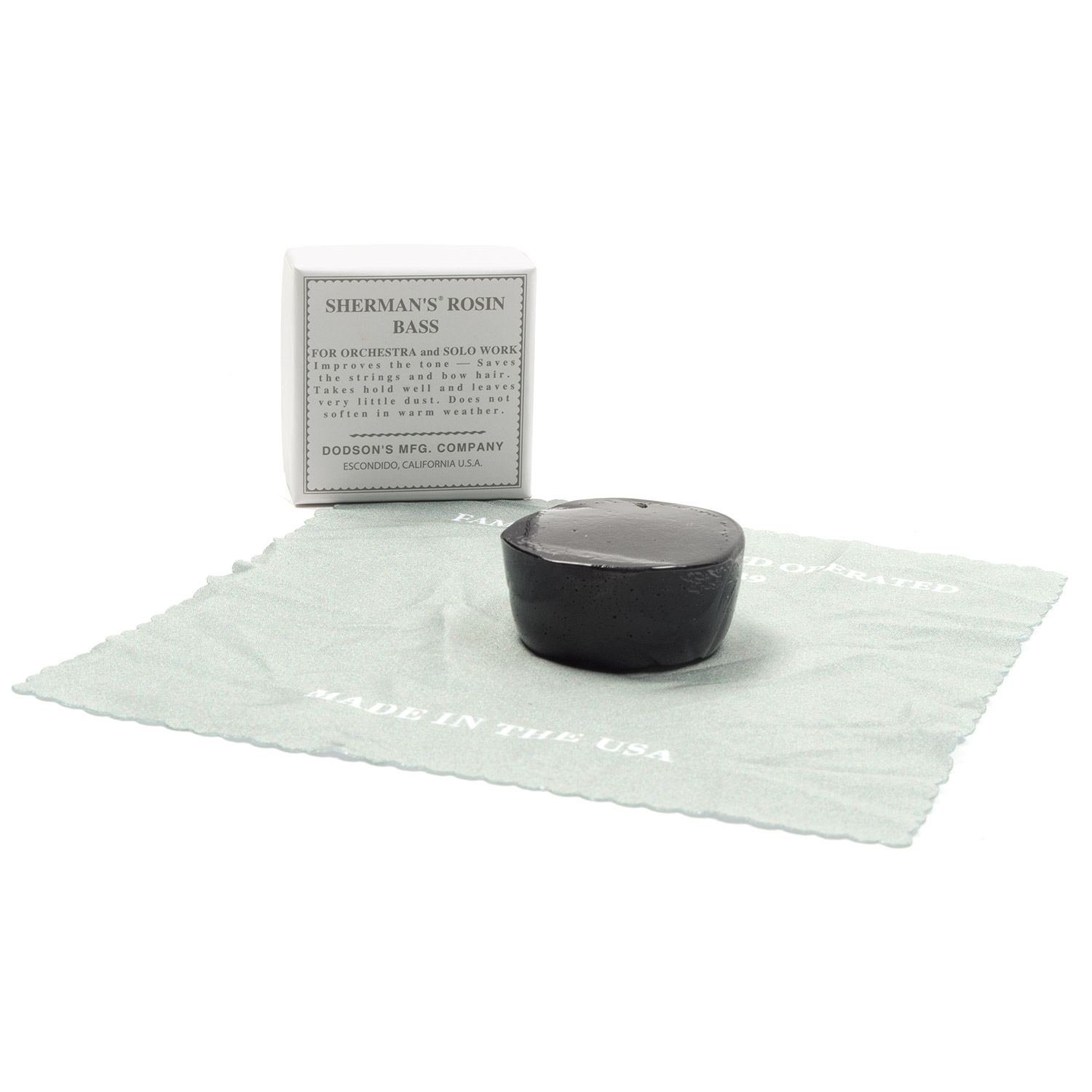 Sherman's Bass rosin is a good student grade rosin which is made in the USA. Formerly in a wood block, this is now a circular cake of rosin in a fabric cloth.