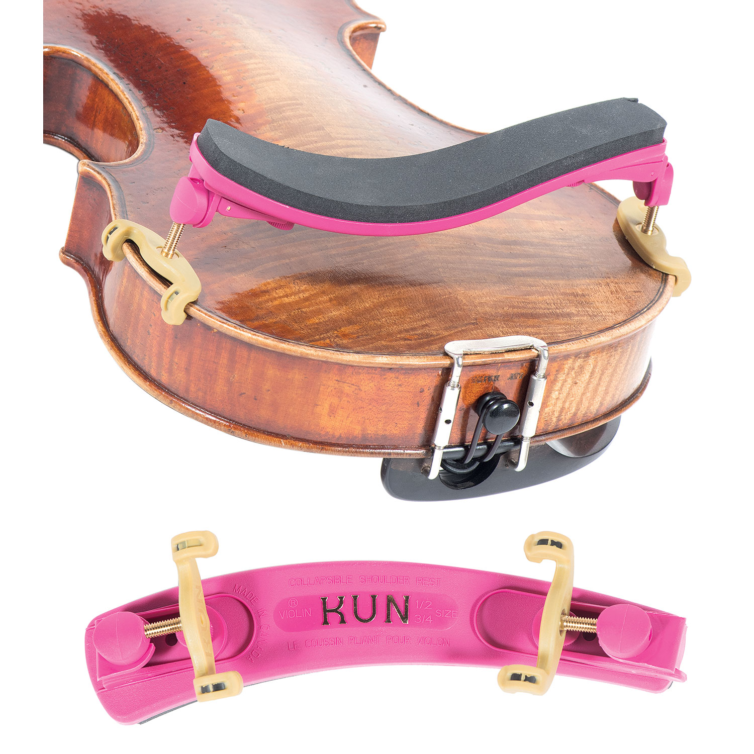 The Kun Junior Collapsible features a comfortable contoured bar with foam padding. It is height and angle adjustable and the legs fold flat for compact case or pocket storage. This junior model fits 1/2 - 3/4 Violins and fits 12" - 13" Violas. Available in four radiant colors, Razzle Dazzle, Atomic Green, Blue Moon and Papaya.