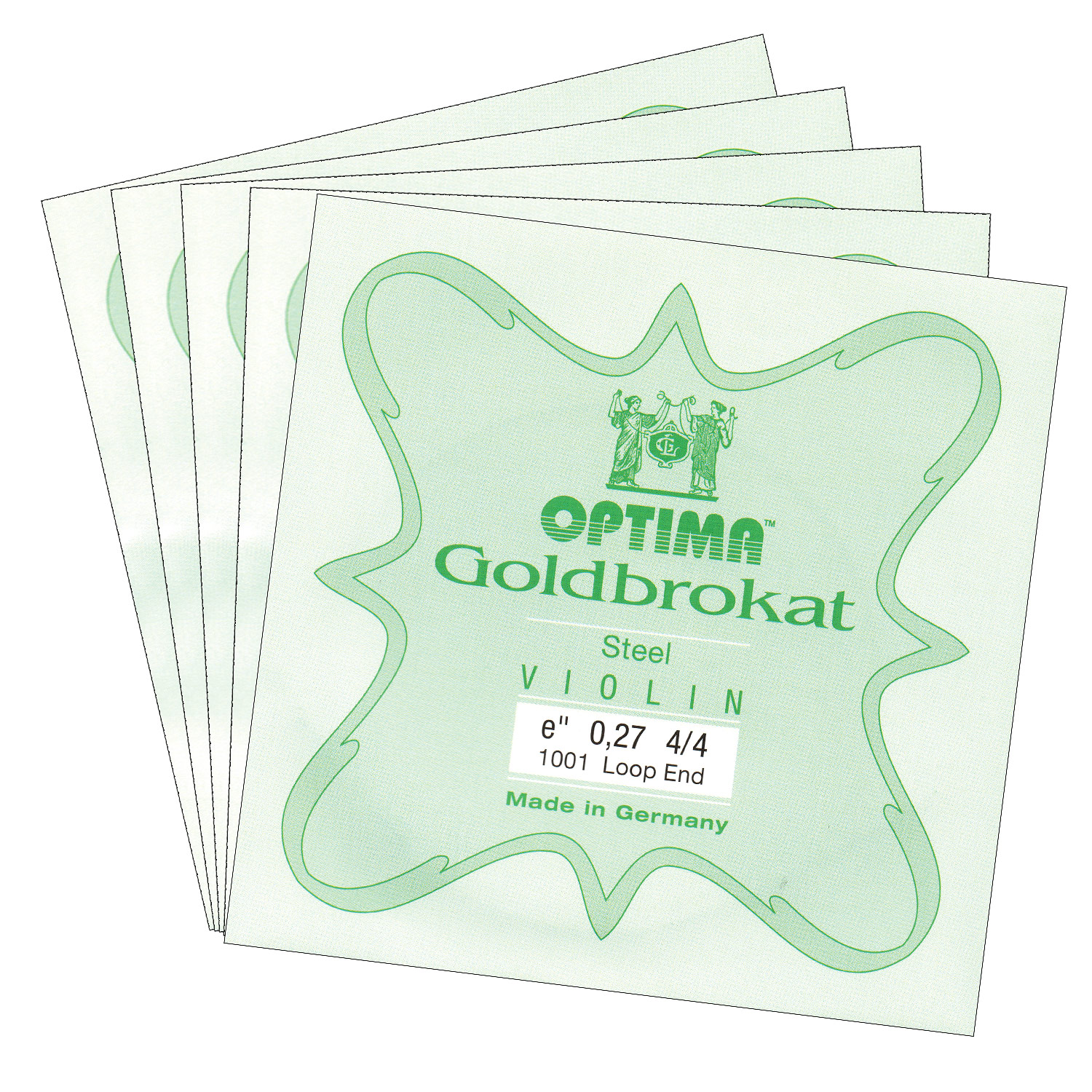 The Optima Goldbrokat steel E string features a superb and inimitable sound, the strings are made exclusively by hand to achieve a consistent, very high tonal quality. Now available in a 5 pack! 5 individual envelope E strings with a loop end.