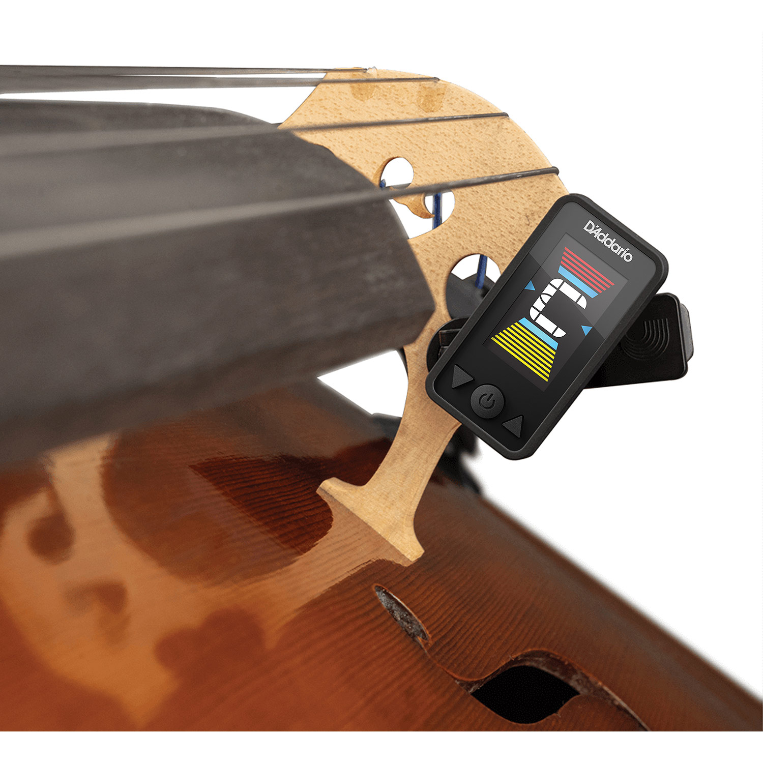The Eclipse Rechargeable Cello & Bass Tuner offers fast, accurate tuning for unparalleled performance. This clip-on tuner pairs beautifully with lower-stringed instruments to offer fast, accurate chromatic tuning in a discreet, compact design. It features a full-color vertical display, auto power-off, and pitch calibration, with 24 hours of tuning per charge. The multi-swivel action allows for the perfect viewing angle when used with cello and double bass. For optimum accuracy, attach the tuner to the lower-strings side of the bridge while in use. 1 ft USB-C cable included for charging.