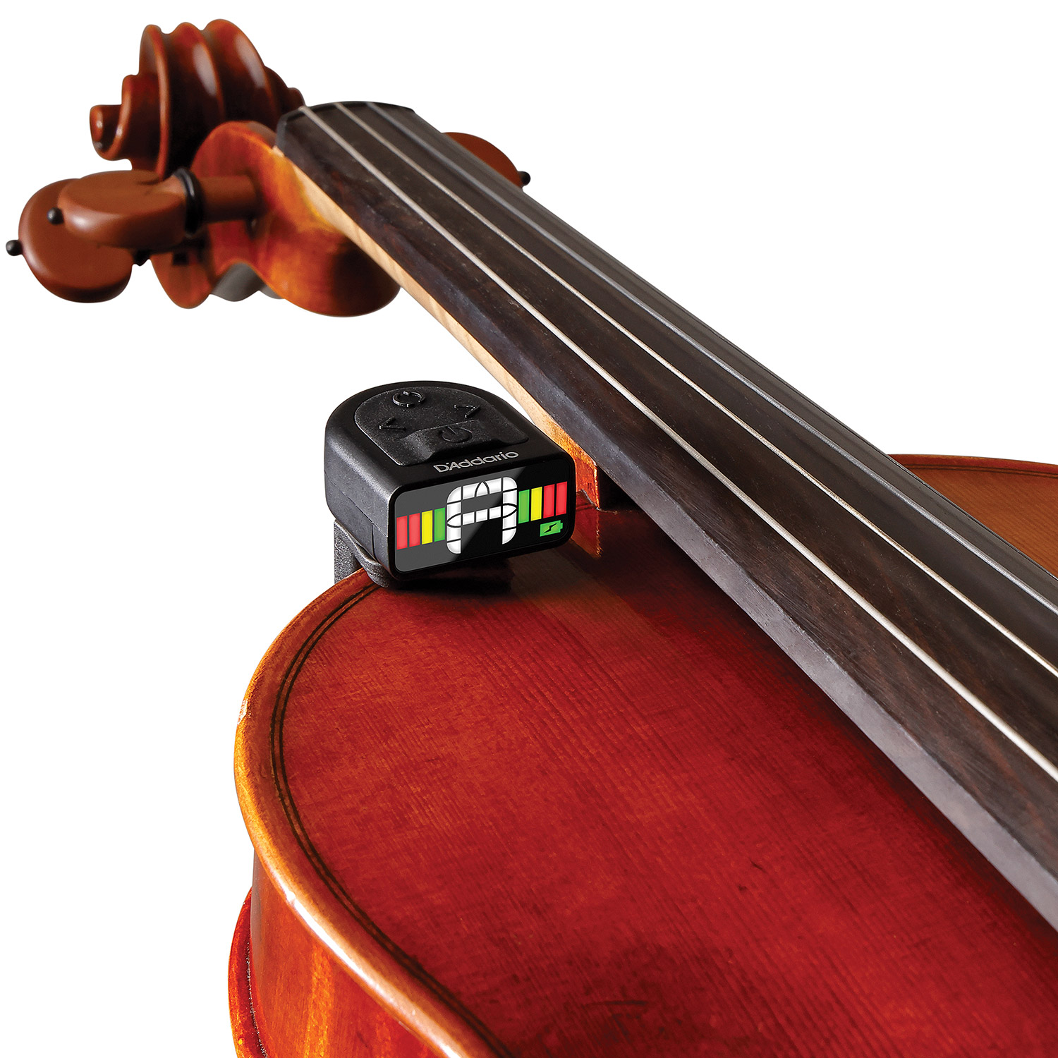 The Micro Rechargeable Viola Tuner is the sleekest, most efficient way to tune your instrument. It features an easy-to-read, multi-color display in an attractive compact design and is fully rechargeable with the included USB-C cable. A non-marring, lever-lock clamp holds the violin tuner securely to the instrument, while still allowing easy application and removal. This precision viola tuner is not only perfect for tuning, but the unique mounting system and fast pitch response allow it to be used as an effective practice tool for referencing and improving intonation while playing.