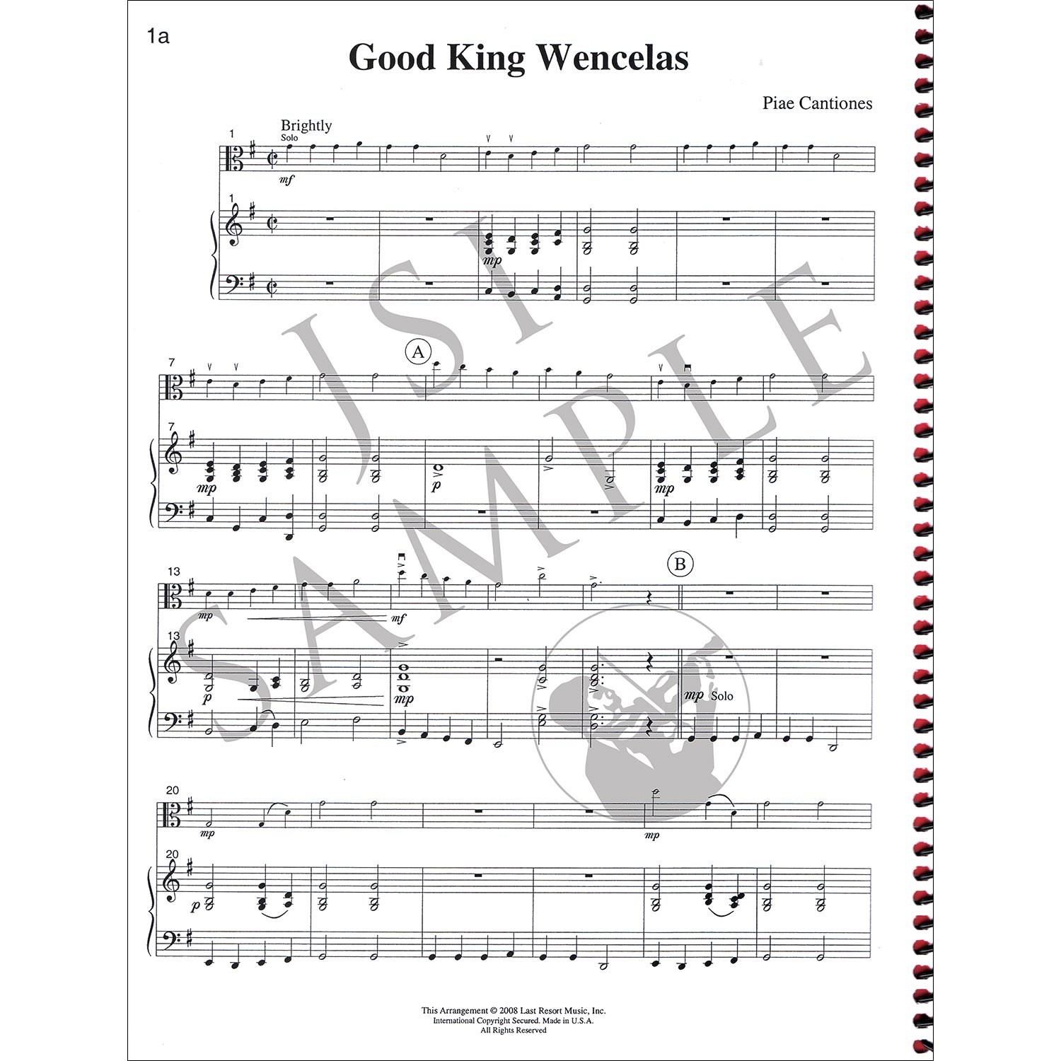 Includes piano accompaniment and viola solo insert