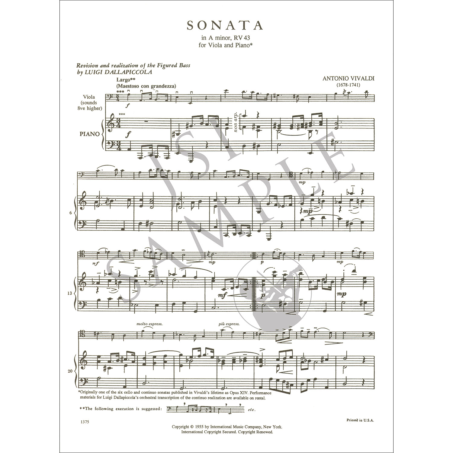 Edited by Luigi Dallapiccola. Arranged by William Primrose. Published by International