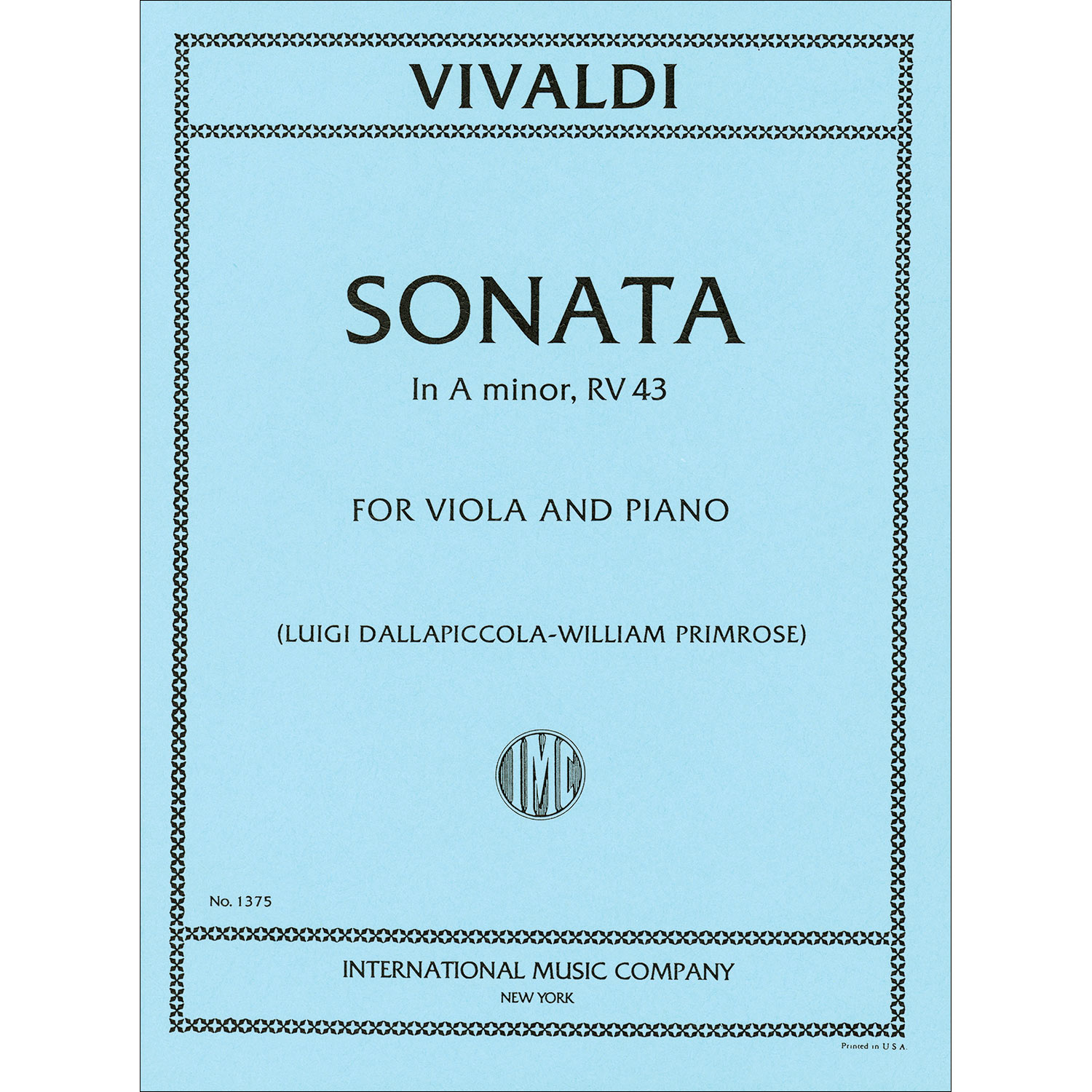 Vivaldi wrote extensively for string instruments, including many sonatas with basso continuo. His surviving cello sonatas are all sonatas da camera (chamber sonatas) resembling short dance suites. In the last century, they have become popular as recital pieces in arrangements with piano accompaniment. This International edition of his Sonata No. 3 in A minor, RV 43 is presented here in an arrangement for viola and piano by legendary violist William Primrose. Intermediate-advanced level, Grade 4.