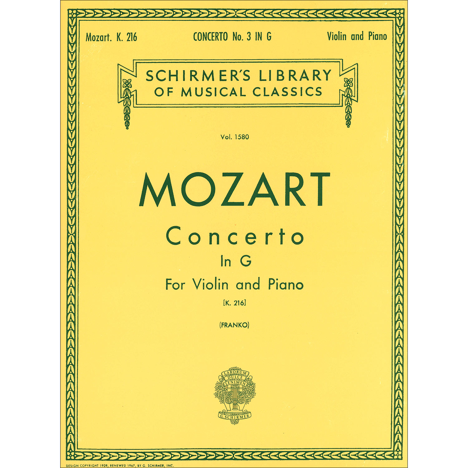 Concerto No. 3 in G Major, K.216 for violin and piano by Wolfgang Amadeus Mozart