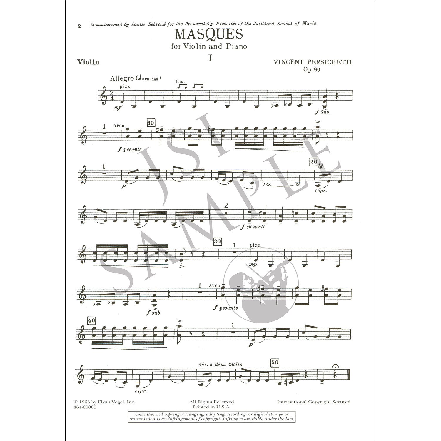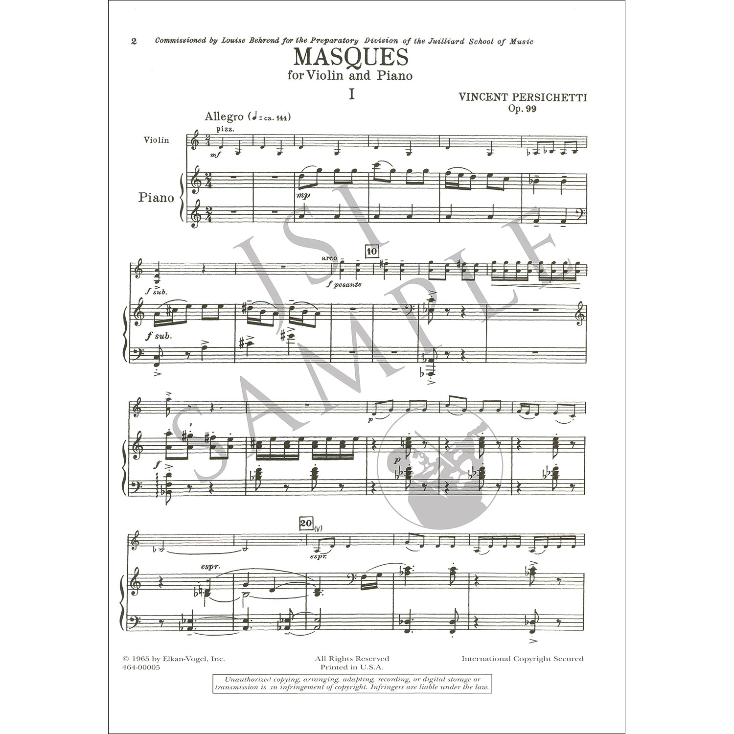 Masques for violin and piano by Vincent Persichetti